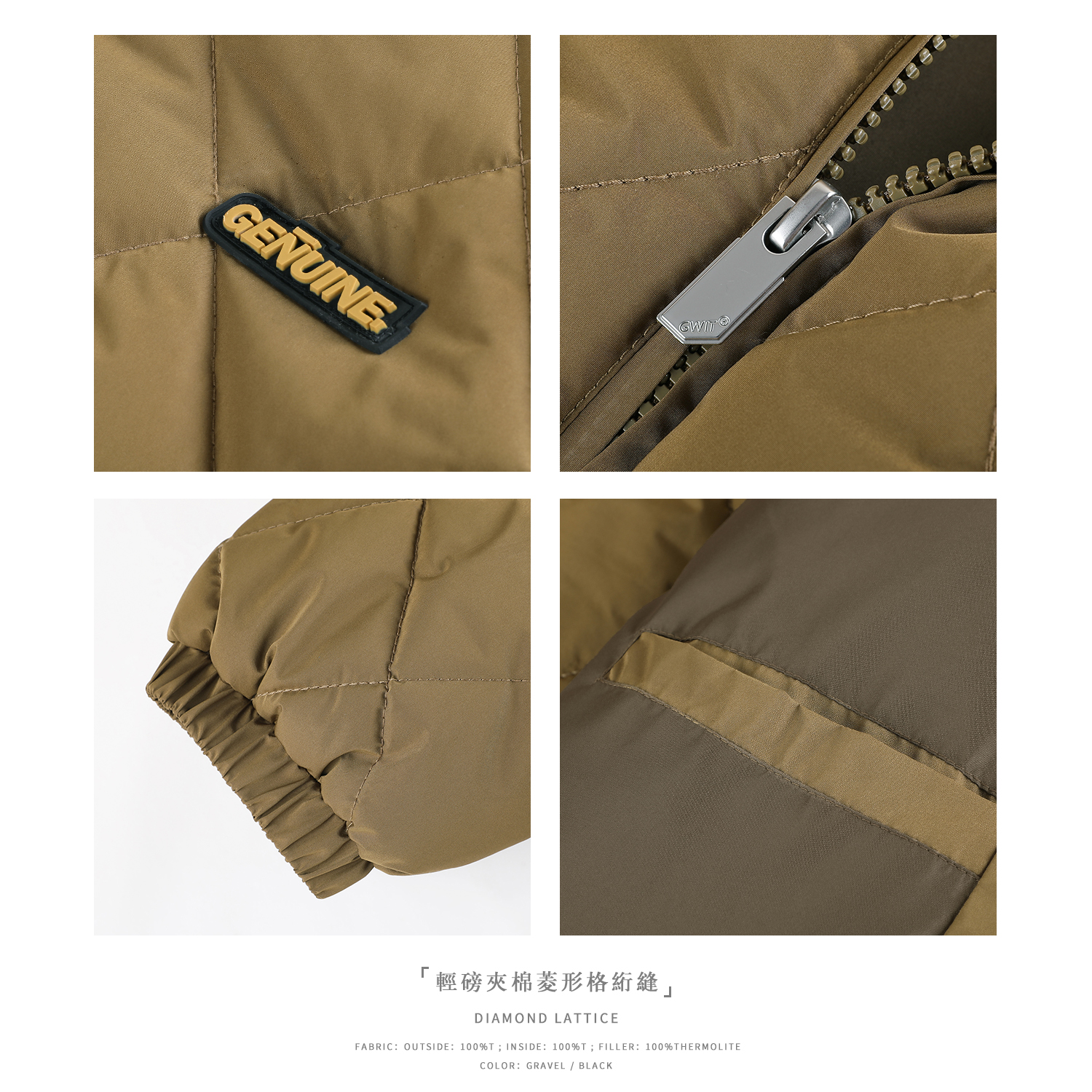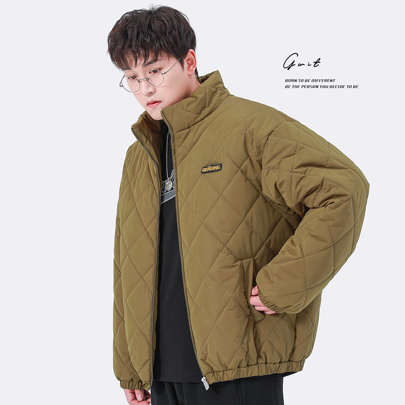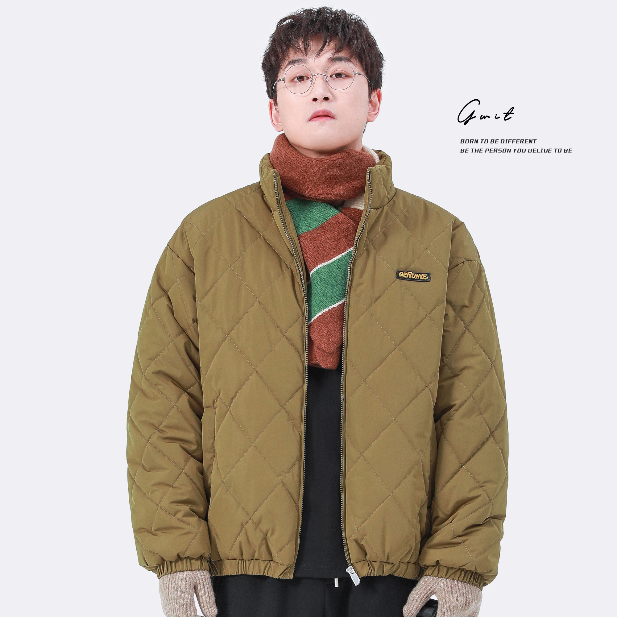 GWIT 轻磅夹棉菱形格绗缝 冬季新款宽松轻薄棉衣潮牌外套棉服男