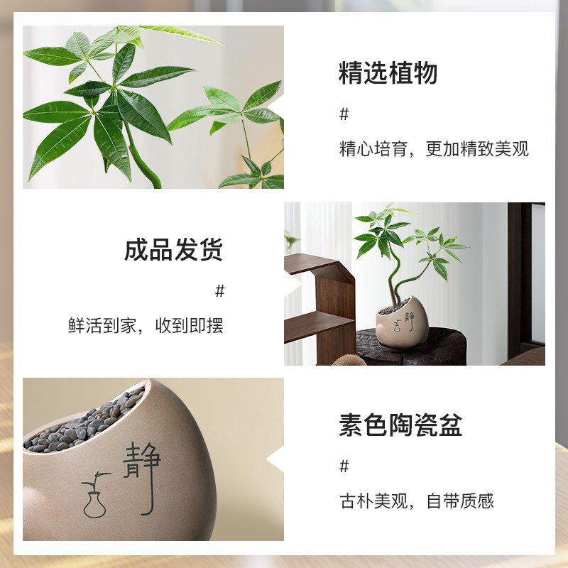 发财树盆景办公室绿植客厅桌面盆栽好养常青中式禅意茶台茶室植物