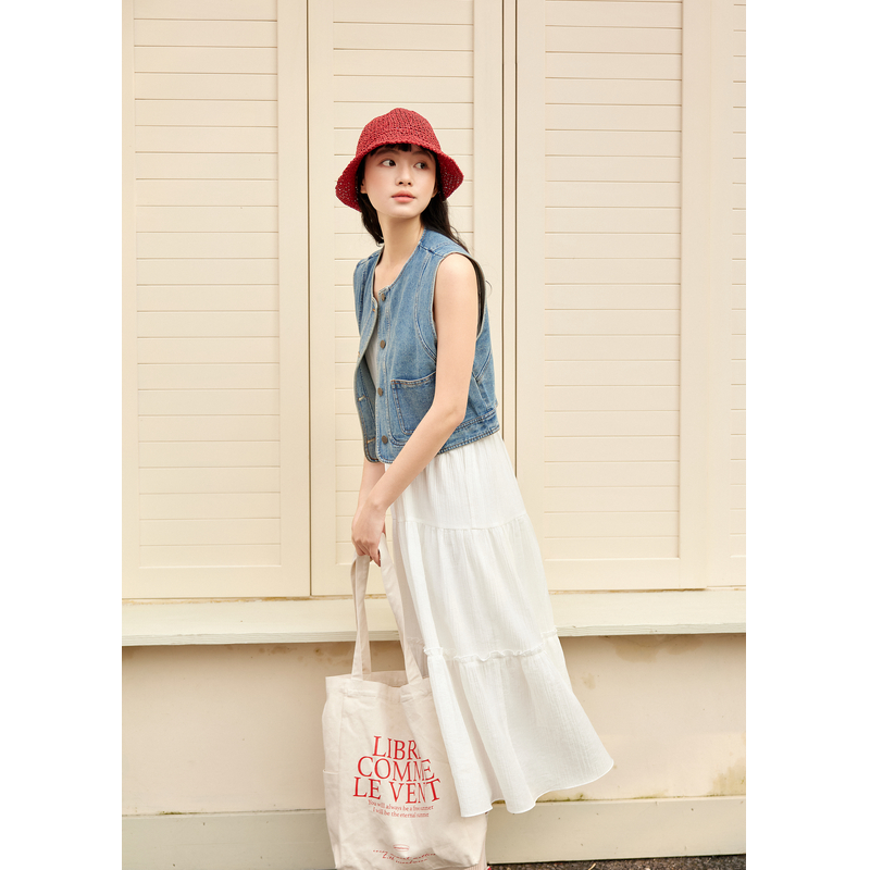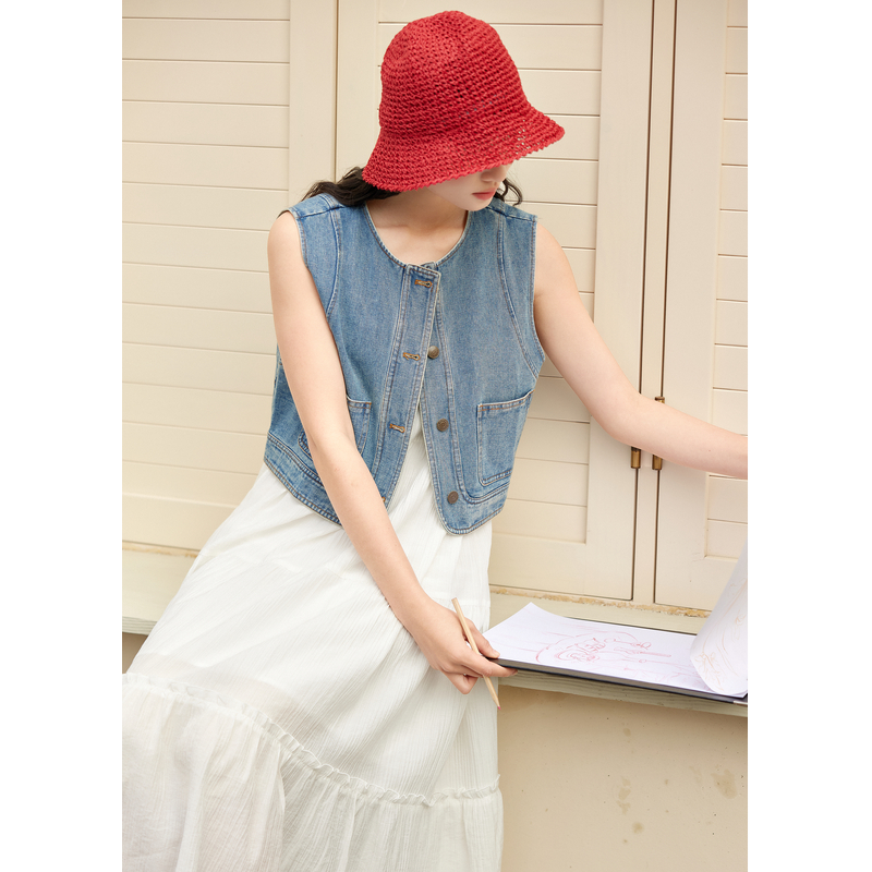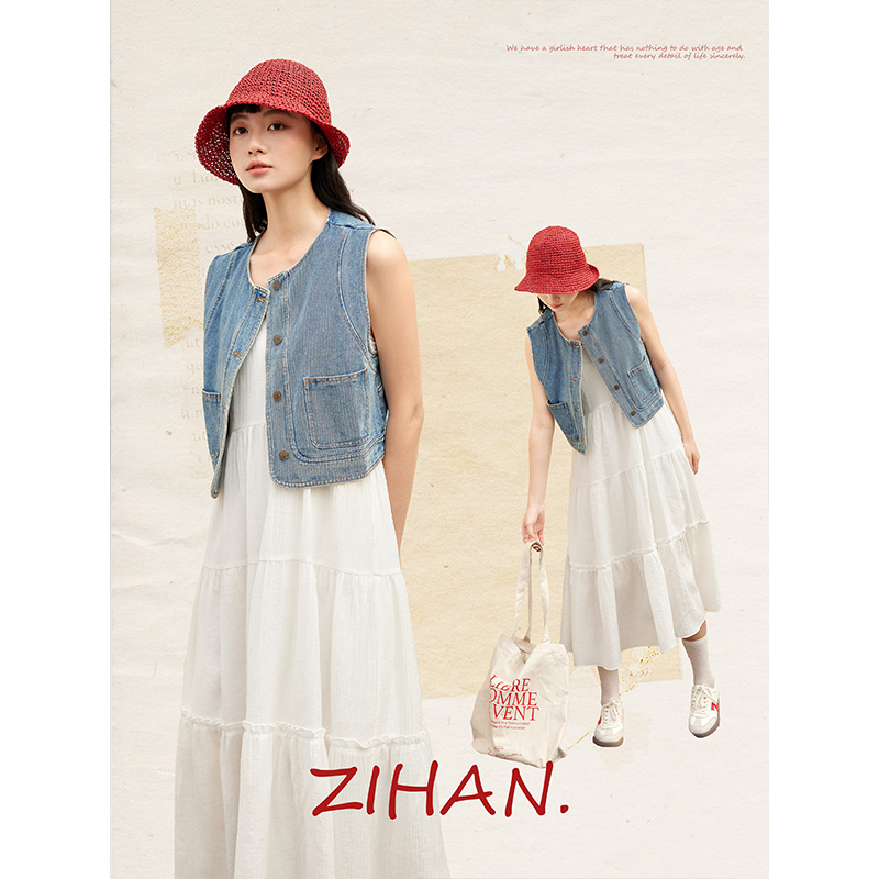 紫涵复古无袖牛仔外套收腰吊带a字连衣裙两件套装女2025夏季新款