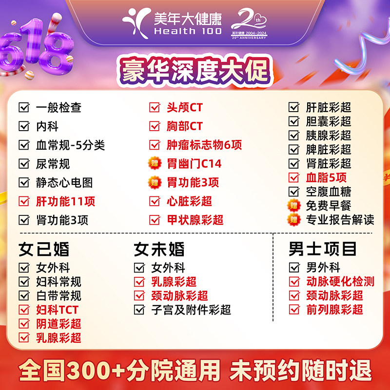 抖音同款】美年大健康豪华深度体检套餐 中老年男女性头胸CT体检
