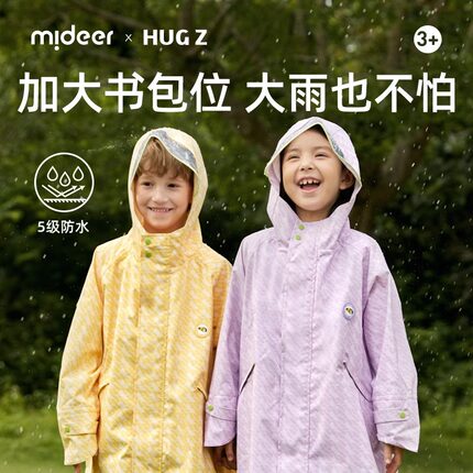 mideer弥鹿儿童雨衣男女童具幼儿园小学生带书包位3-8岁4斗篷雨披