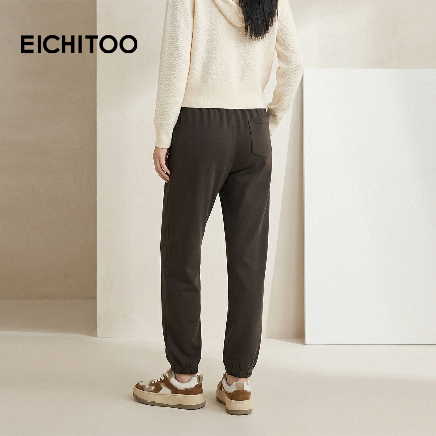 爱居兔束脚哈伦裤女秋季深棕色复古时尚休闲裤