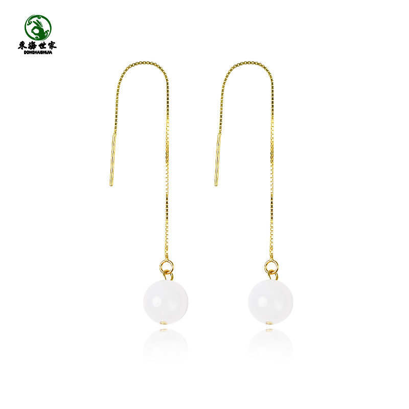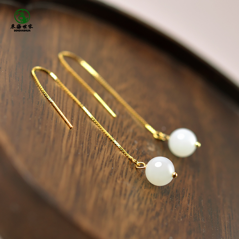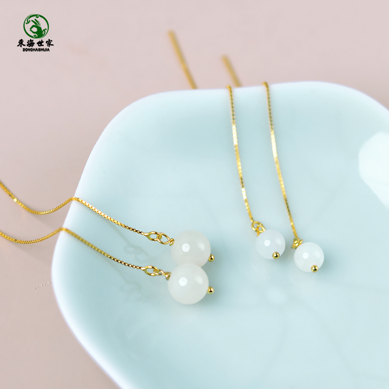 和田玉耳饰女银耳线坠东海水晶玛瑙翡翠玉石散珠子羊脂玉白玉耳钉