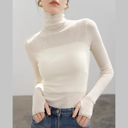 高领软糯羊毛打底衫女2026秋冬薄款内搭上衣针织衫堆堆领微透毛衣