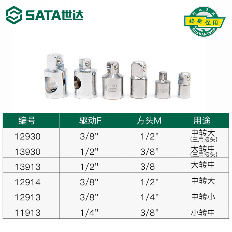 世达套筒转换接头1/2大飞转3/8中飞转1/41/4吋套筒扳手变头转接头