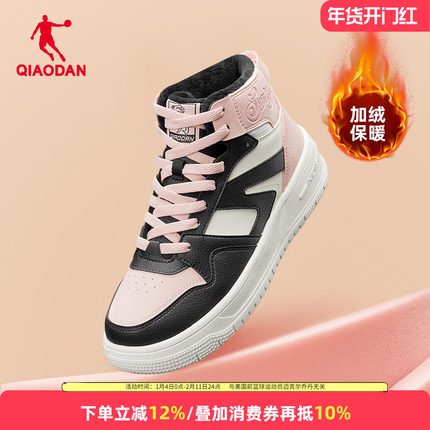 乔丹女鞋高帮加绒棉鞋秋冬款二棉运动鞋女增高防滑女鞋保暖滑板鞋