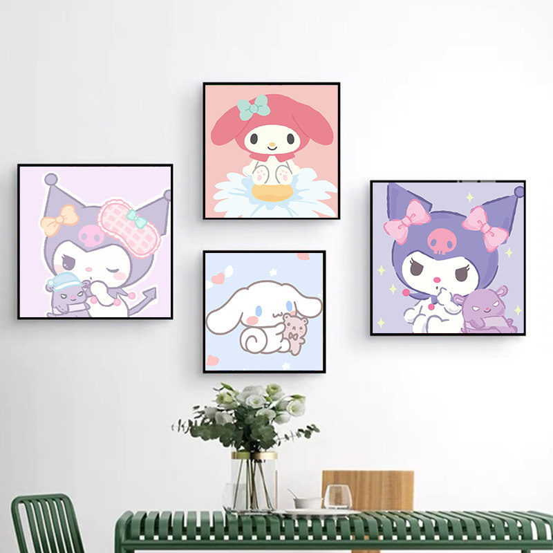 三丽鸥库洛米玉桂狗数字油画diy填色可爱卡通动漫手绘丙烯装饰画