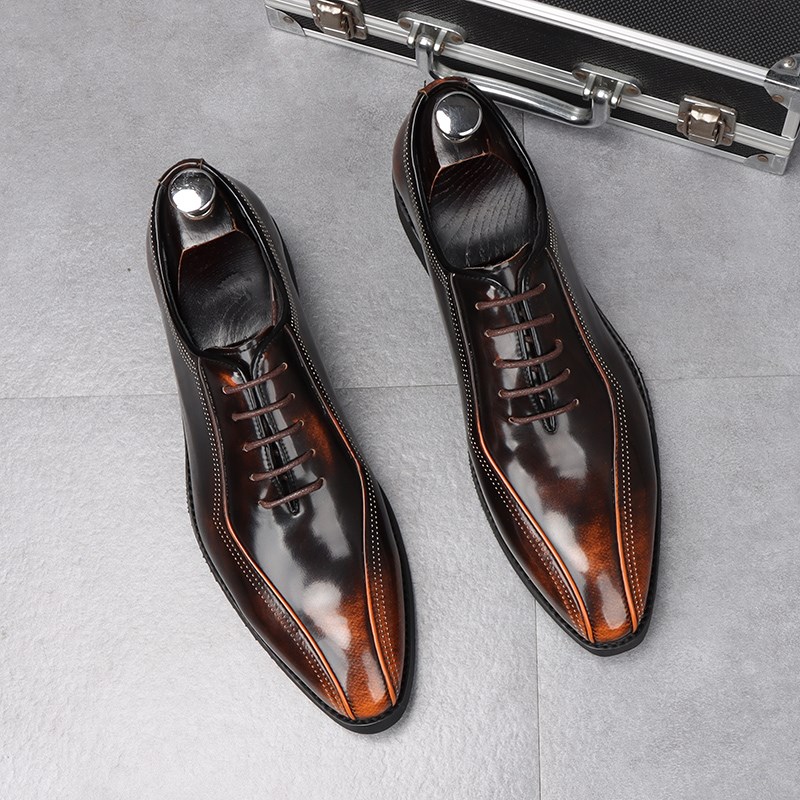 青年方头皮鞋男高级感英伦正装内增高男鞋亮皮百搭商务休闲婚礼鞋