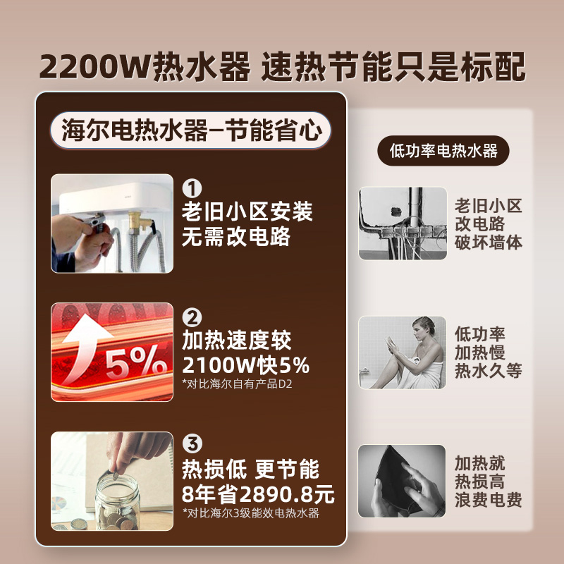 [换新补贴]海尔leader热水器电家用速热节能60L储水式卫生间洗澡