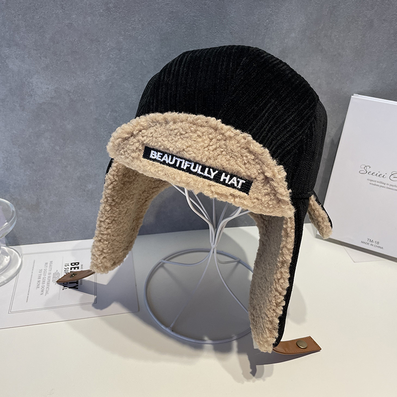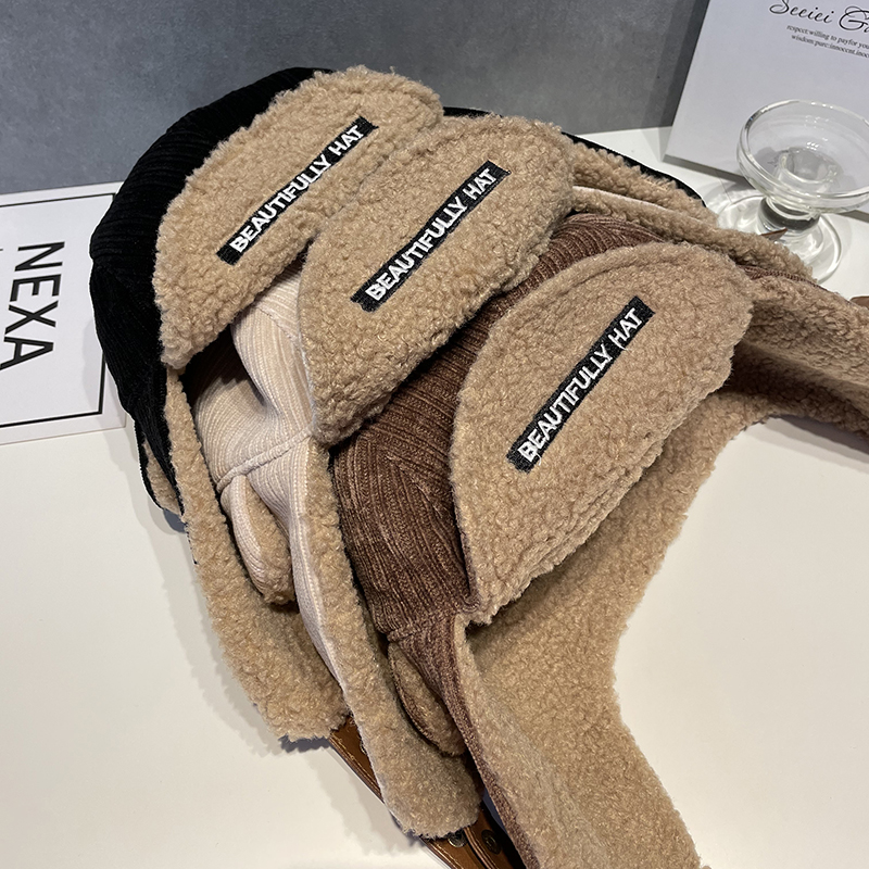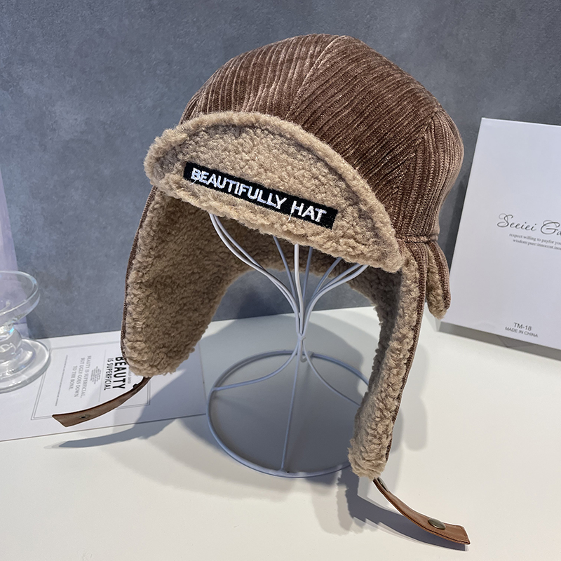灯芯绒雷锋帽男女同款冬季大头围圆顶短檐加厚保暖户外骑行护耳帽