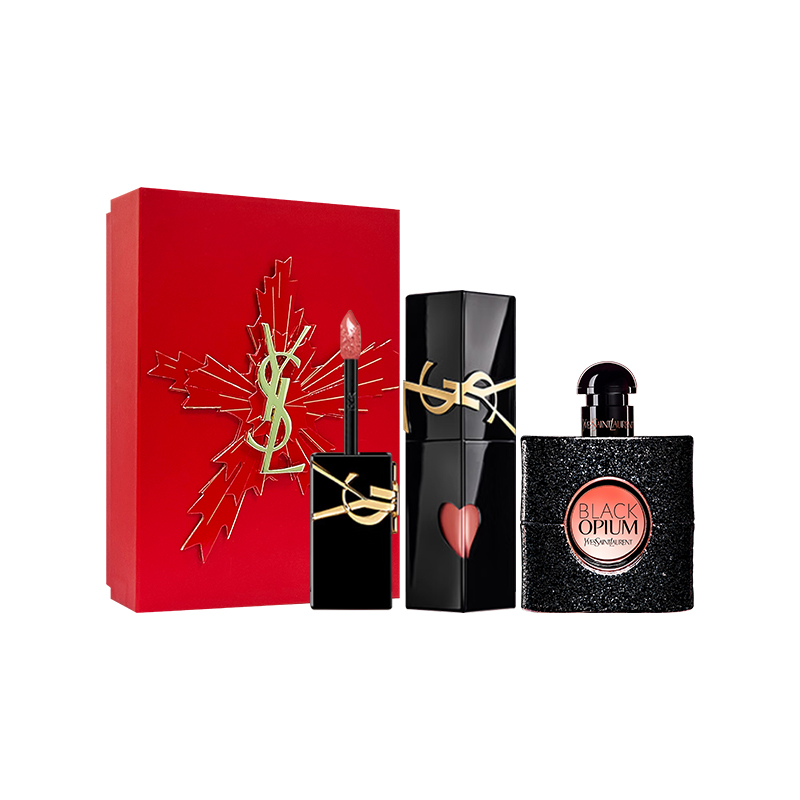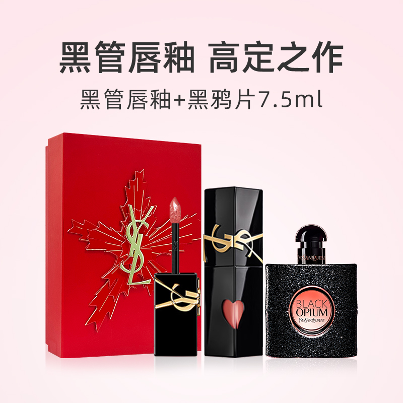 【自营】【礼盒】YSL圣罗兰啵啵唇冻黑鸦片香水7.5ml唇釉口红套装