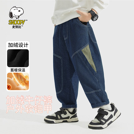 史努比男童牛仔裤春秋装2025新款秋季洋气小童儿童装直筒裤子加绒