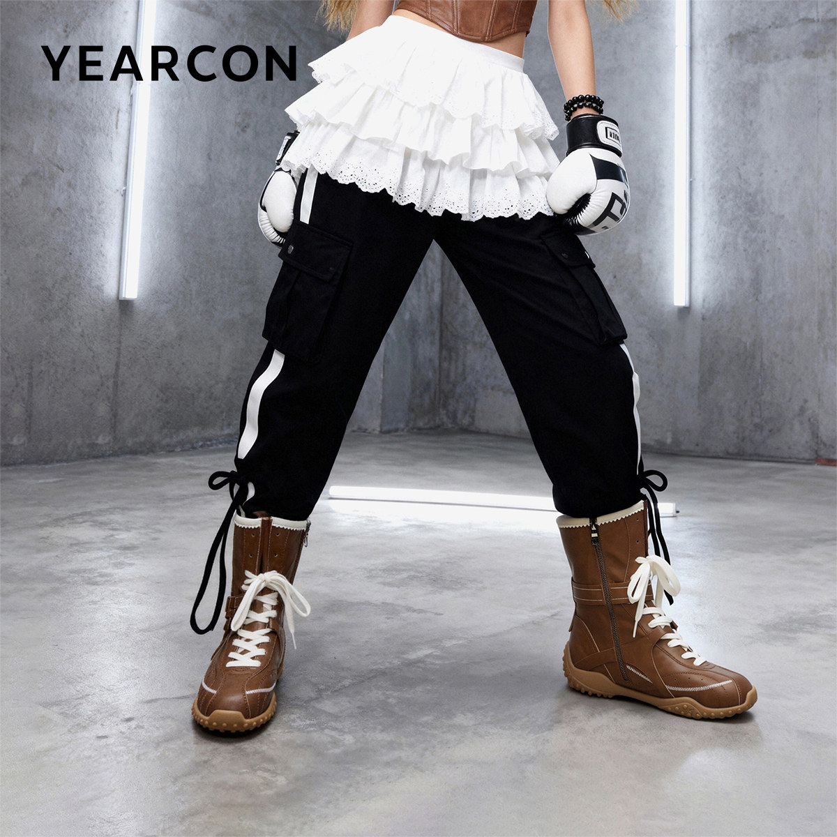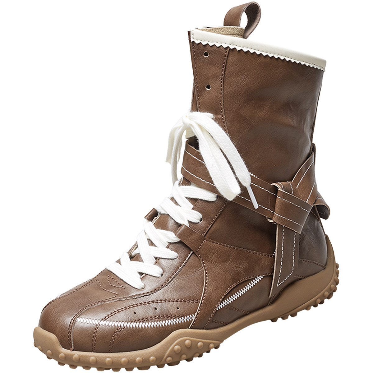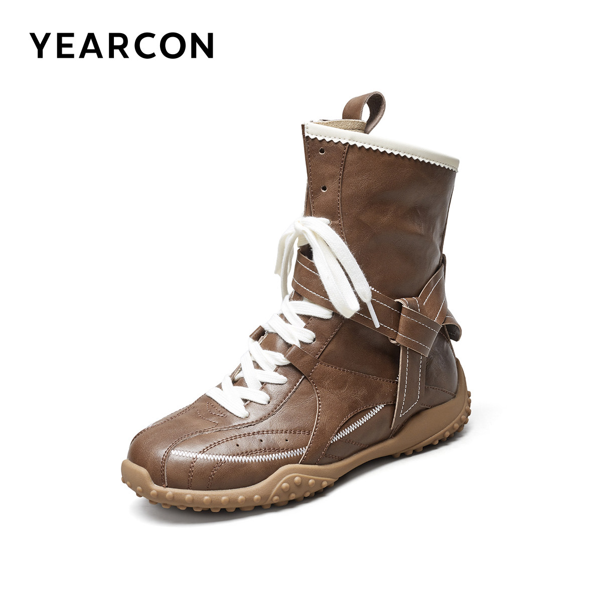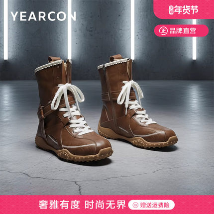 意尔康拳击靴2025冬季新款马丁靴个性女靴美拉德平底中筒西部靴子