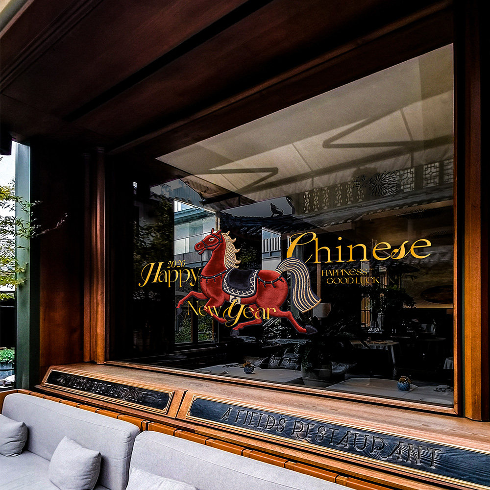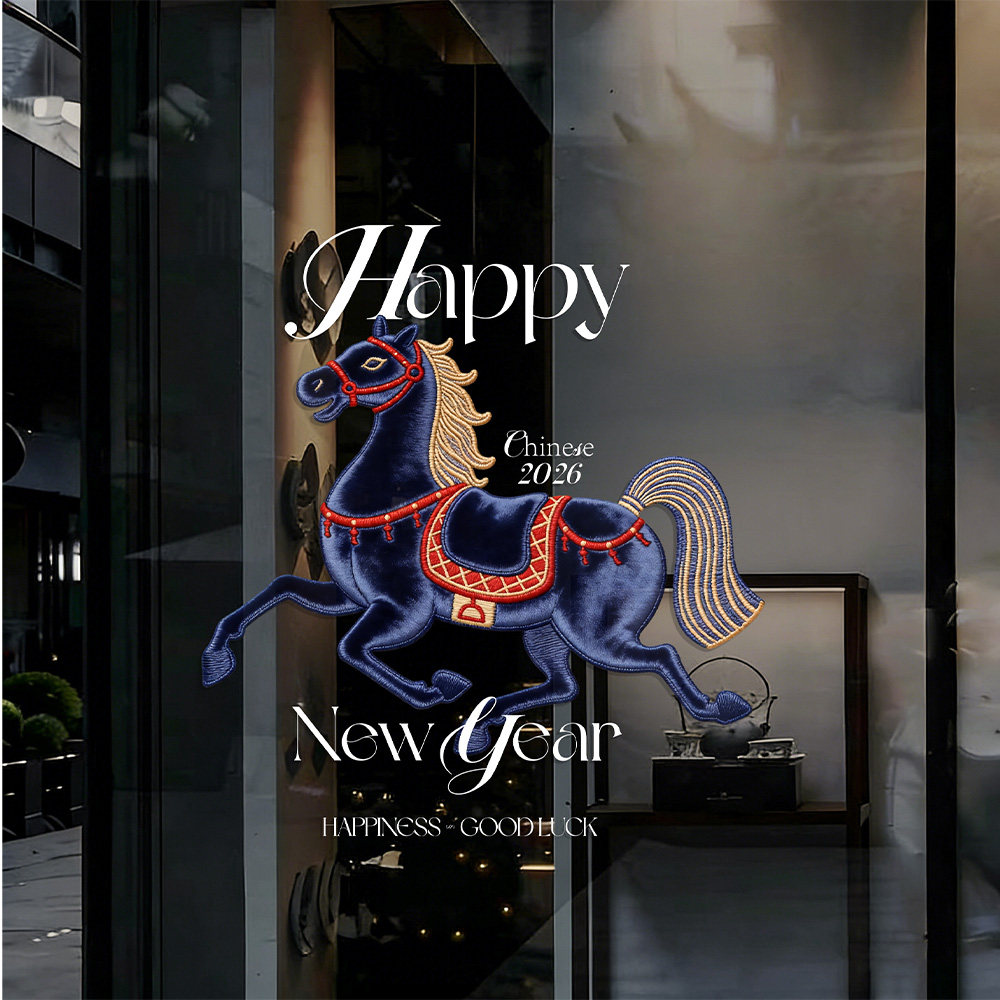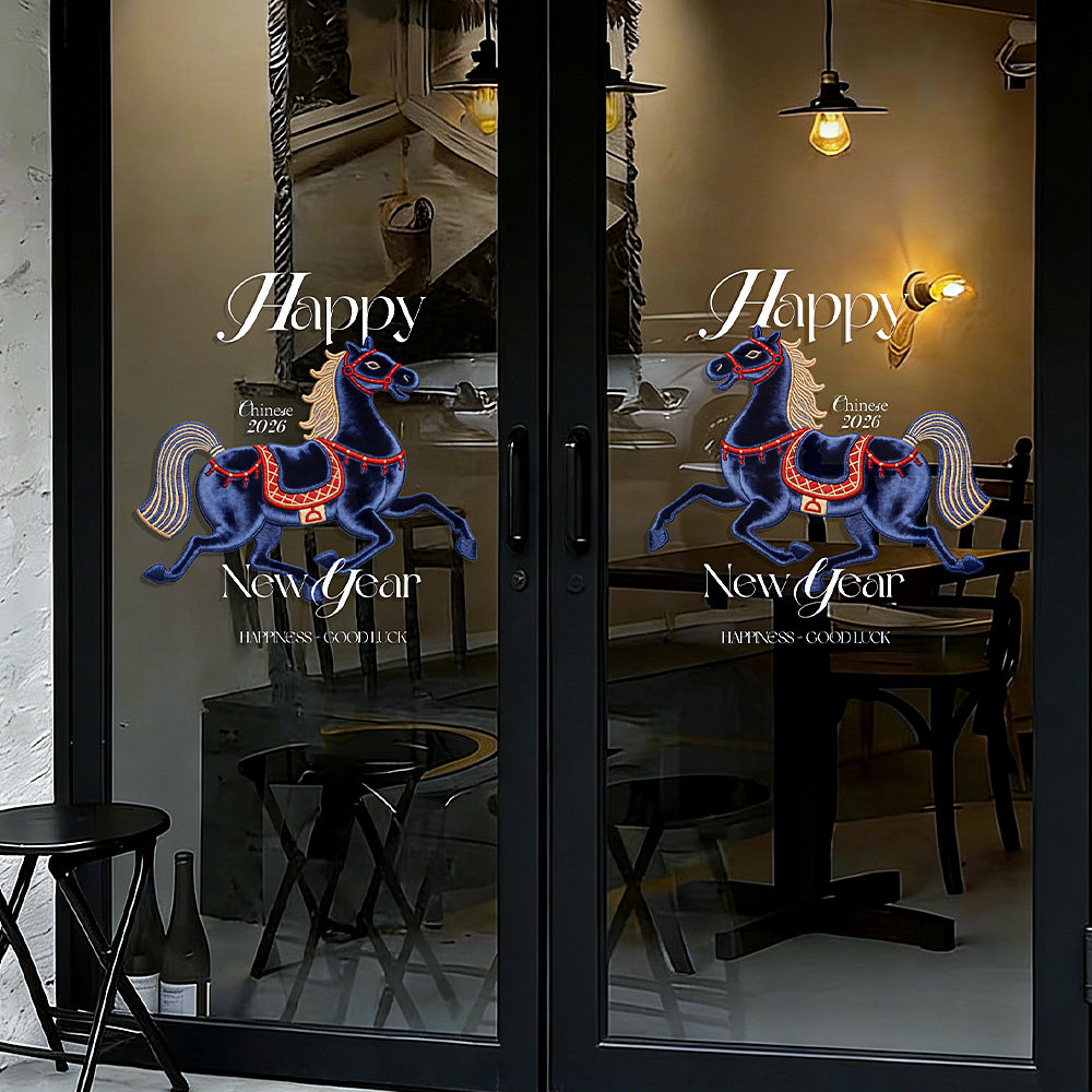 2026马年新款窗花新年红色骏马玻璃门贴纸春节装饰新年快乐静电贴