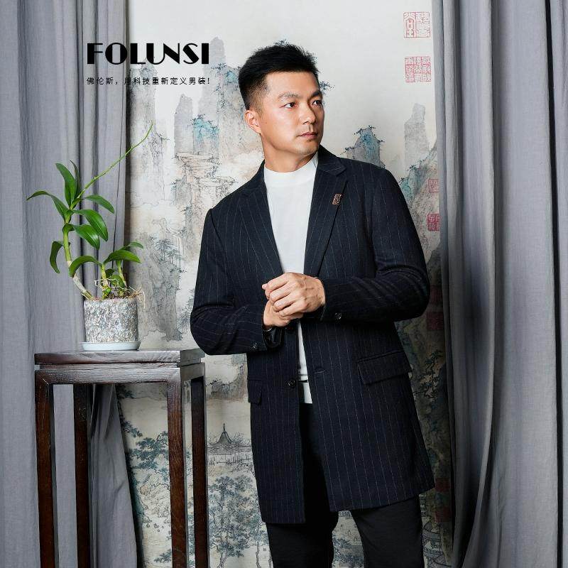 佛伦斯FOLUNSI新款秋冬季中式提花休闲商务西装外套西服男士大衣