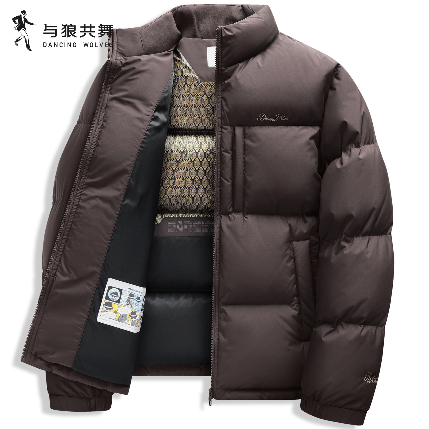与狼共舞立领羽绒服男2025冬季新款户外防水保暖鸭绒短款加厚外套