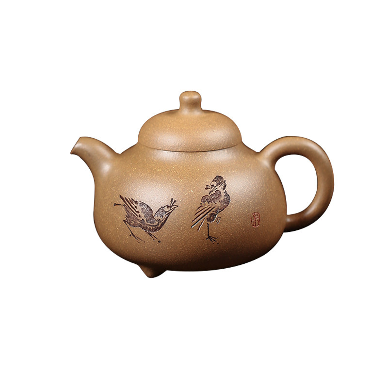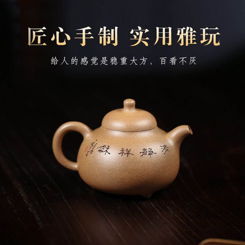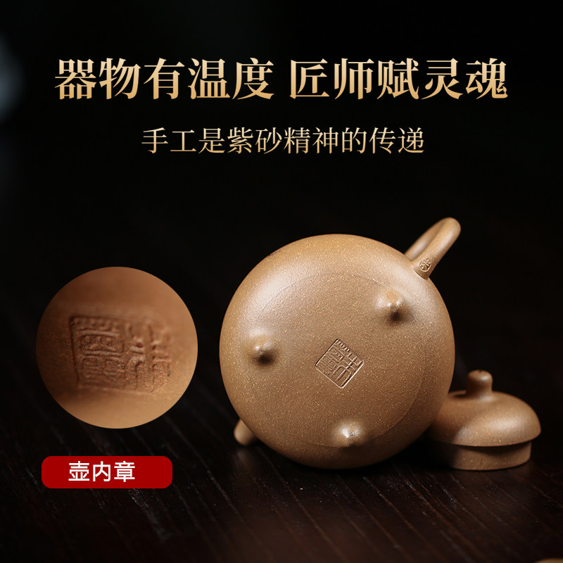 宜兴紫砂壶名家纯手工原矿黄金段泥工艺师重器经典三足乳鼎壶套组