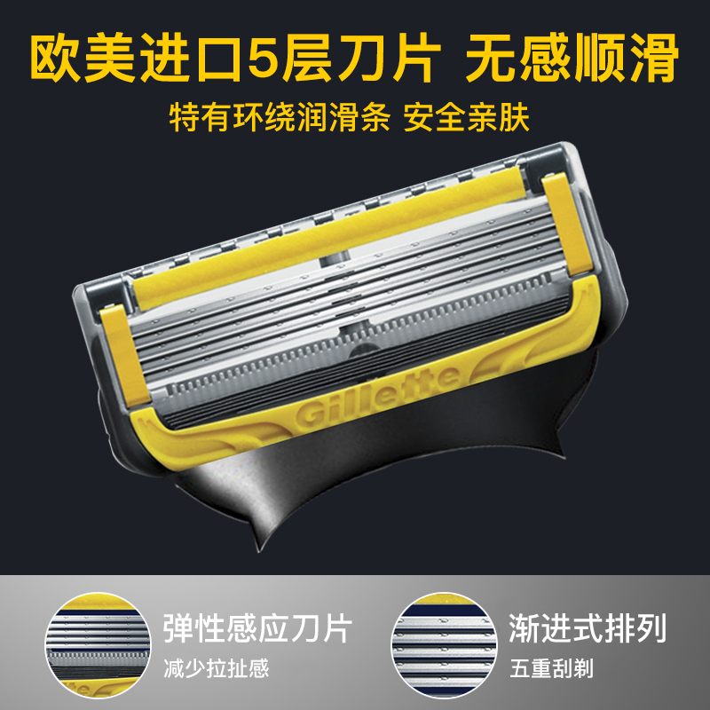 吉列锋隐致护五手动剃须5层刀片刮脸锋速刮胡1刀架4刀头正品
