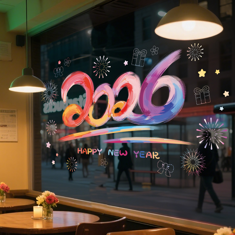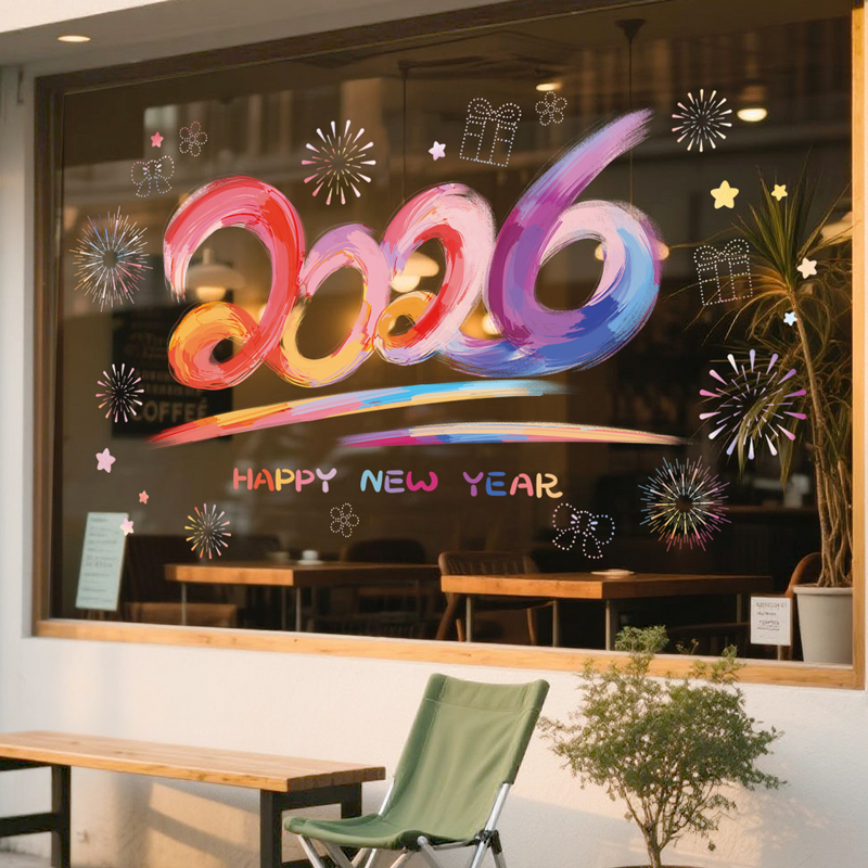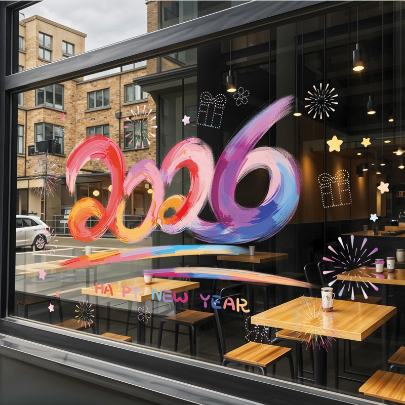 创意新年布置春节过年装饰品玻璃贴纸窗贴窗花贴2026马年门贴年画
