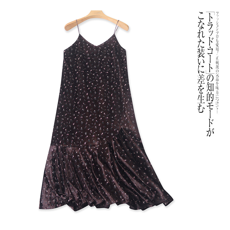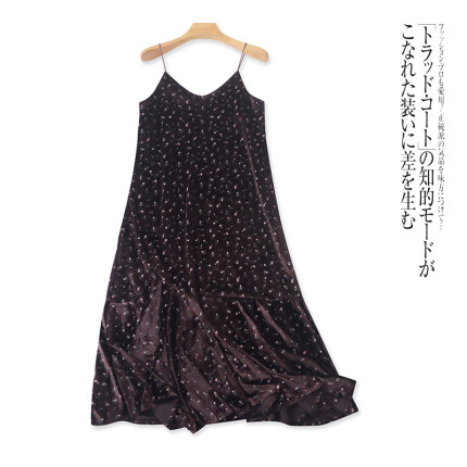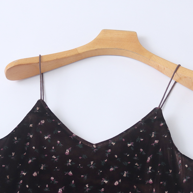外贸欧美单金丝绒连衣裙2025春季新款V领印花时尚女士吊带长裙