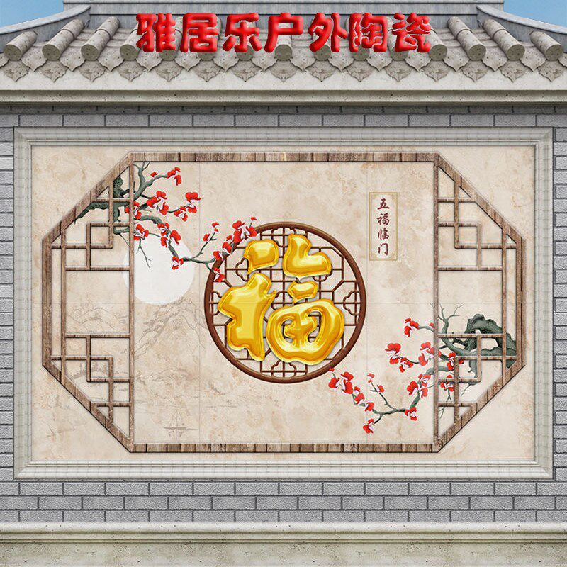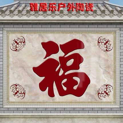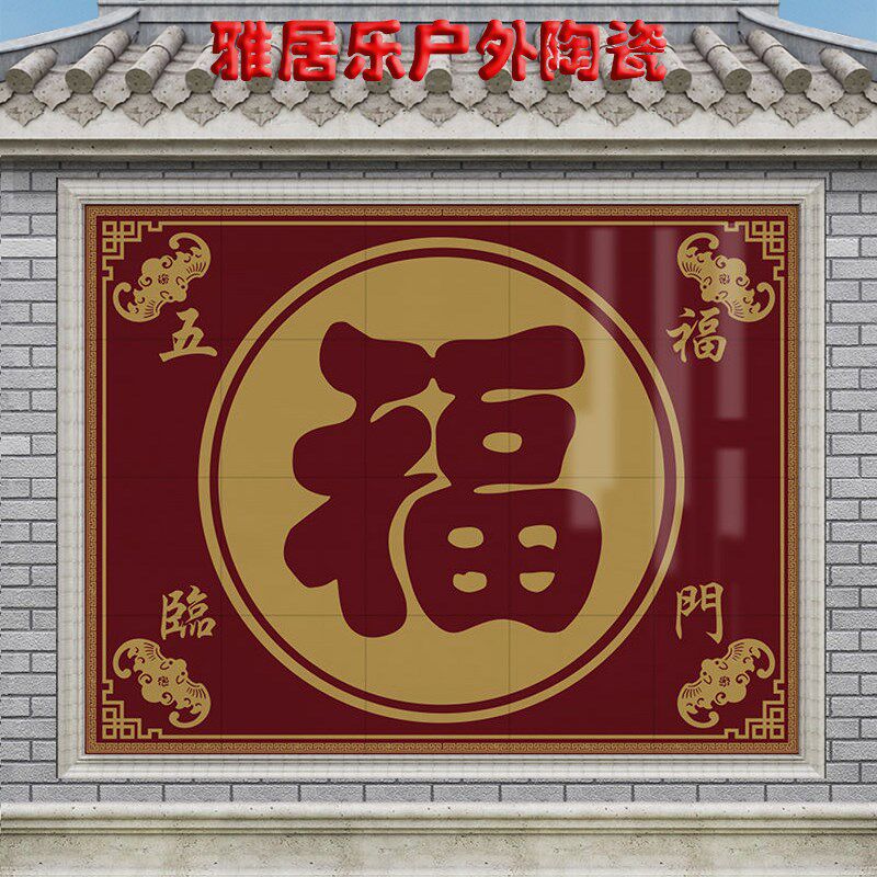 百福满门影壁照壁瓷砖庭院迎门墙农村户外别墅福字背景墙大型壁画