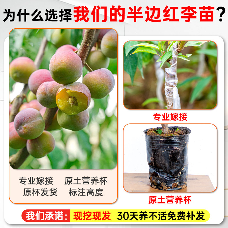半边红脱骨李树苗带土带叶包成活