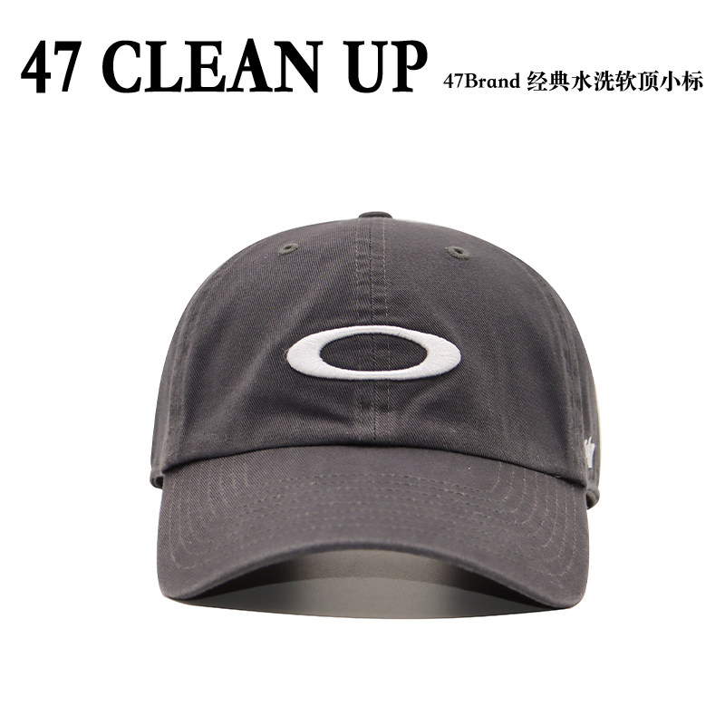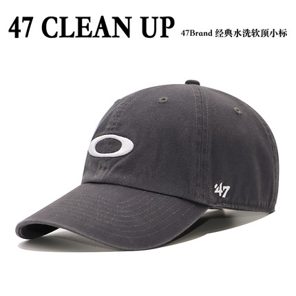 47Brand Oakley欧克利联名mlb棒球帽灰色字母O水洗软顶男女鸭舌帽