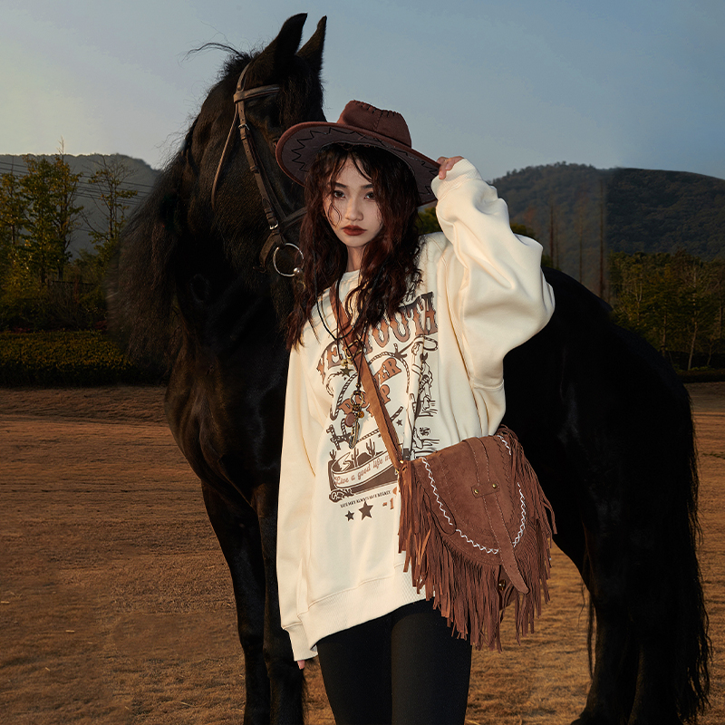 YEP美式复古卫衣女春秋oversize设计感慵懒风长袖无帽圆领上衣ins