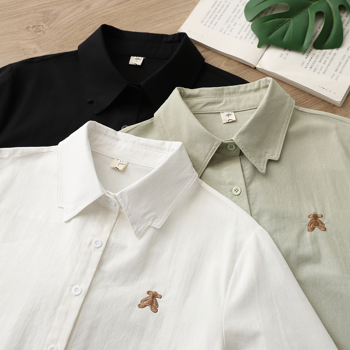清仓捡漏~专柜撤柜外贸日系文艺刺绣棉麻衬衫女宽松休闲打底衬衣