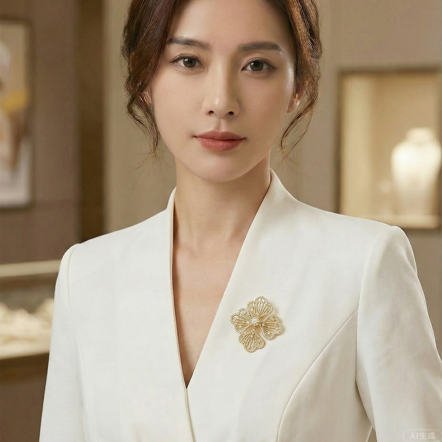 Annaya银杏叶胸针西装配饰大衣胸花小众轻奢高档奢华气质女款礼物