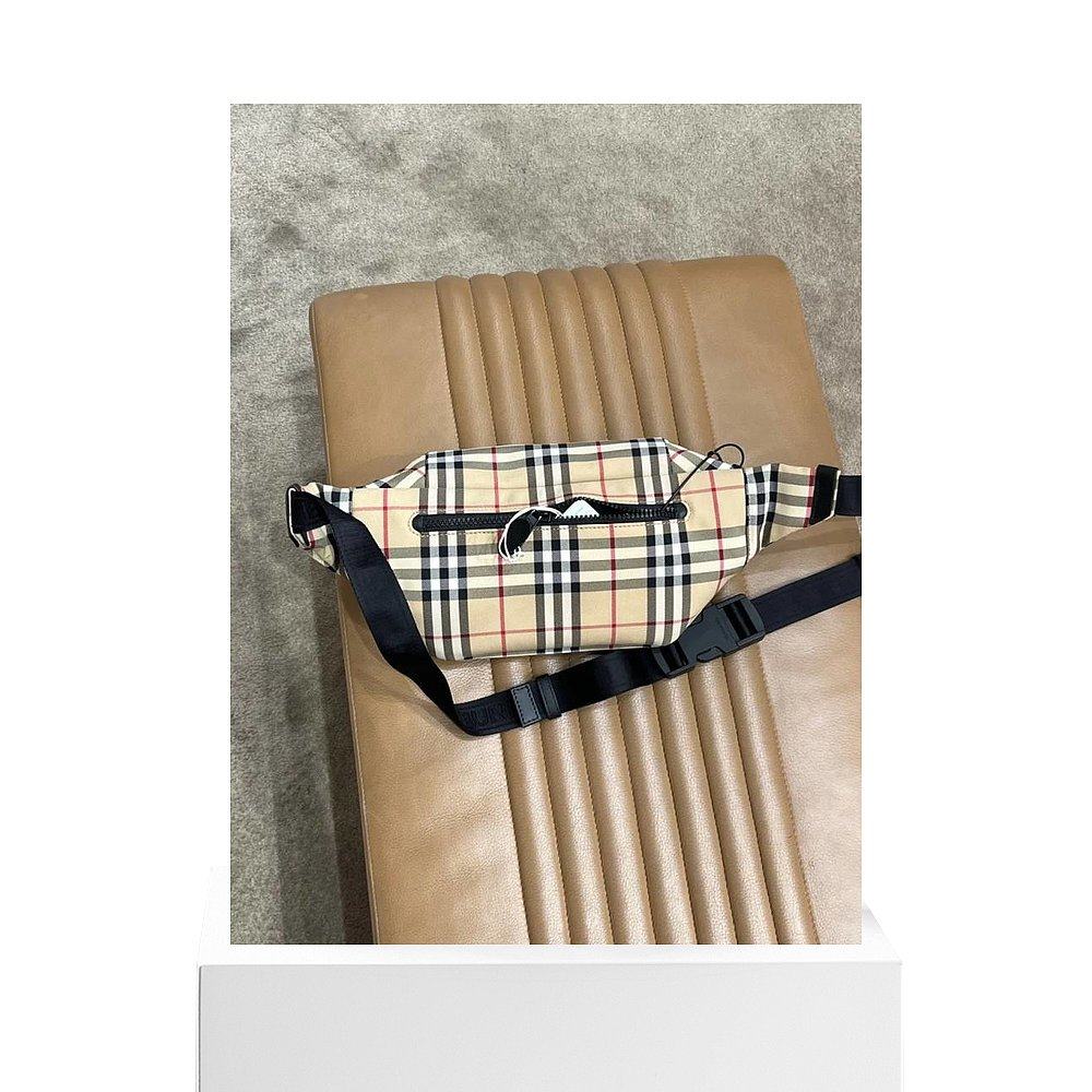 欧洲直邮Burberry博柏利经典格纹腰包斜挎包男女通用牛皮单肩包