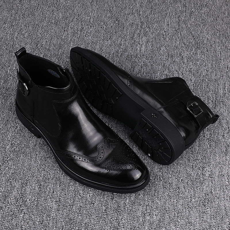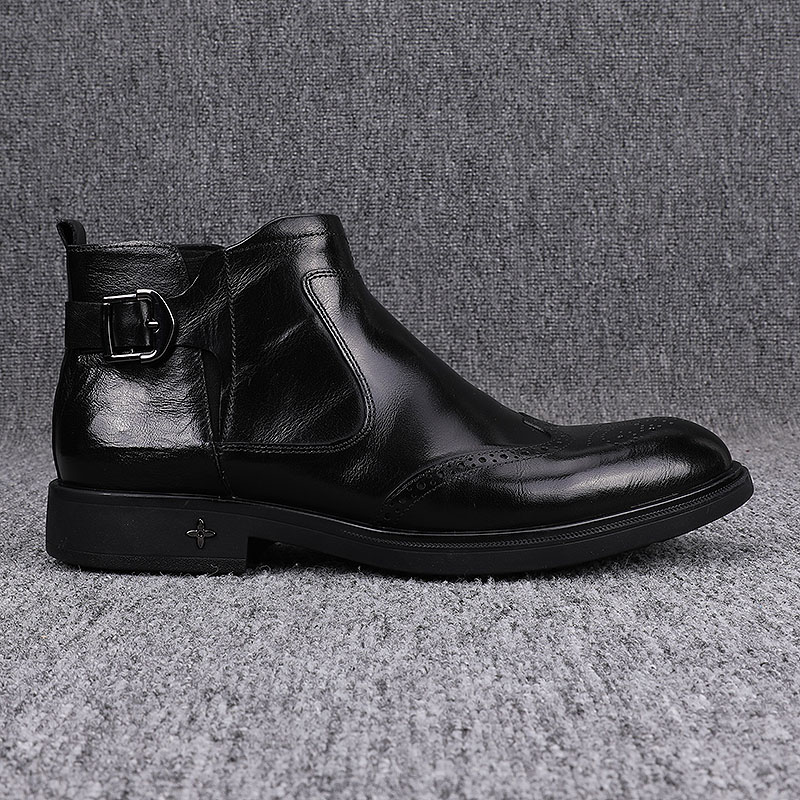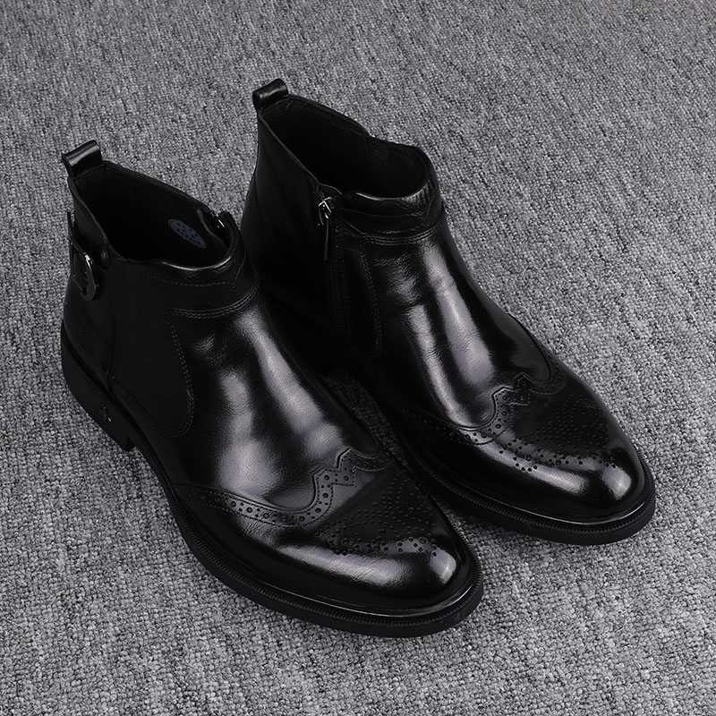 2025冬季高帮拉链小尖头棉皮鞋男英伦百搭日常布洛克切尔西马丁靴