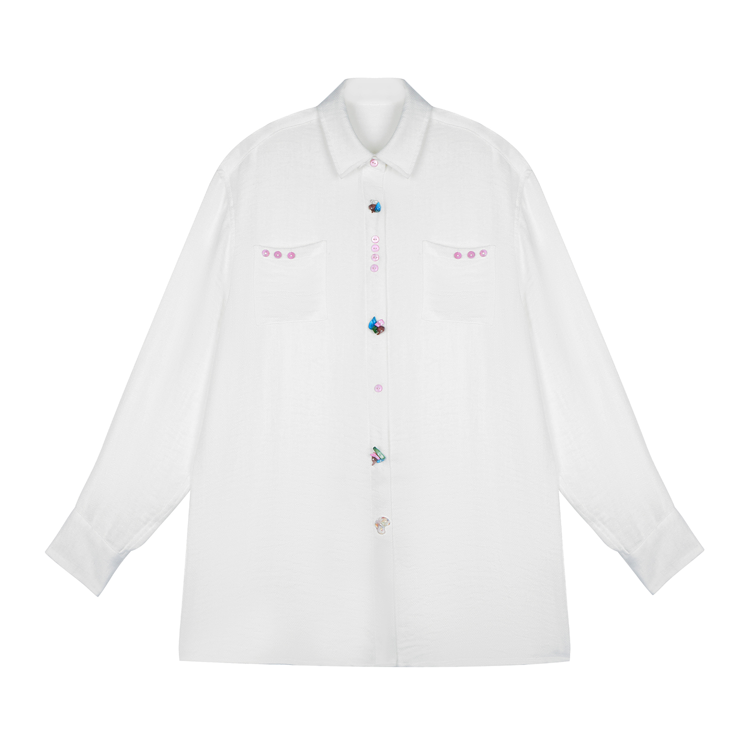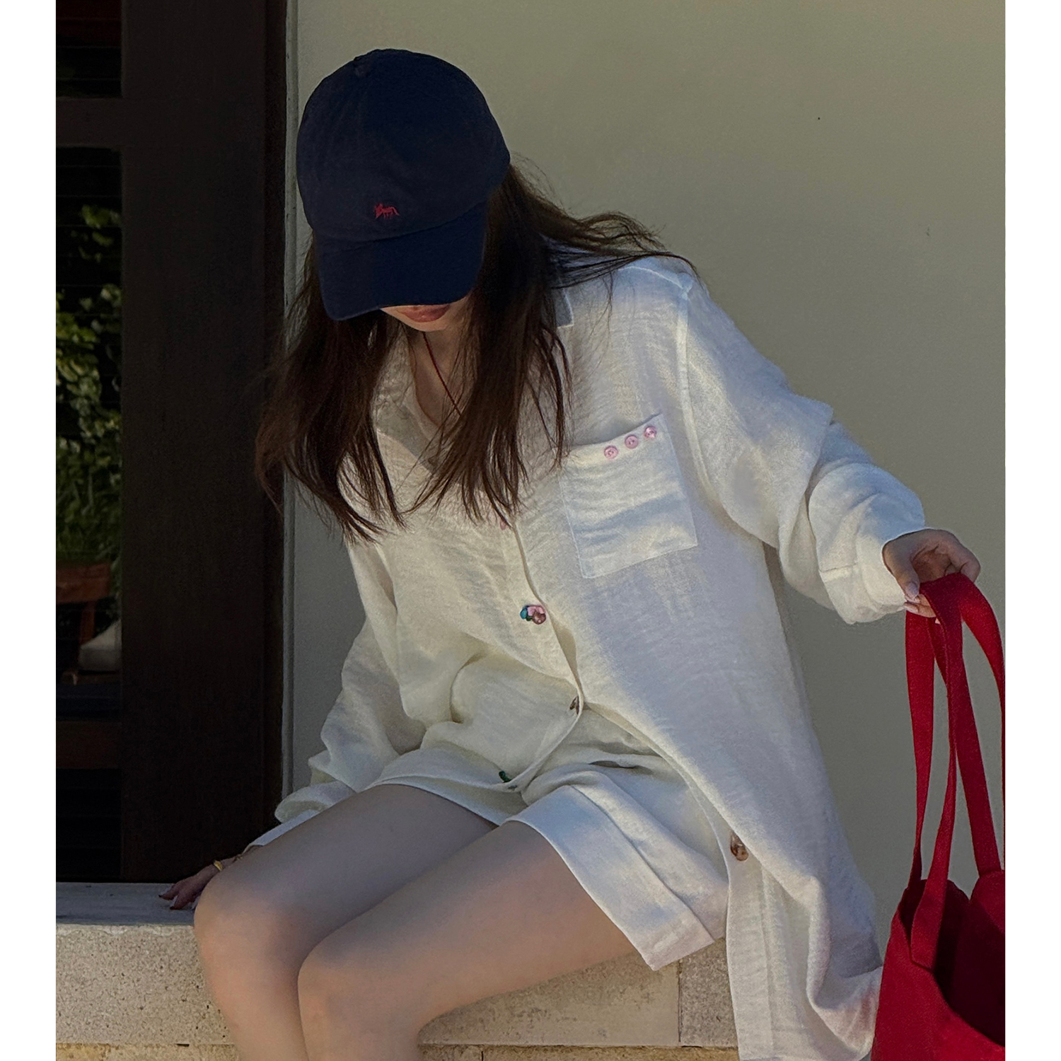 CHU楚妞[彩扣]人棉亚麻长袖衬衫2025夏季新款女百搭宽松衬衣上衣