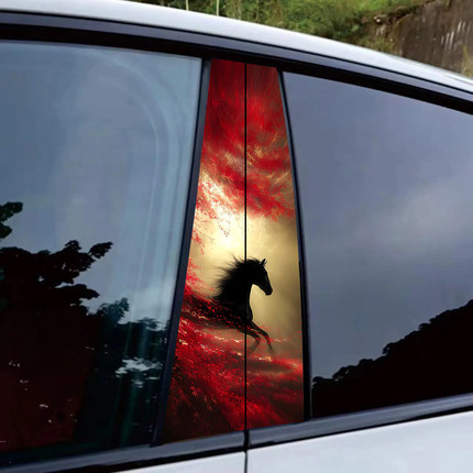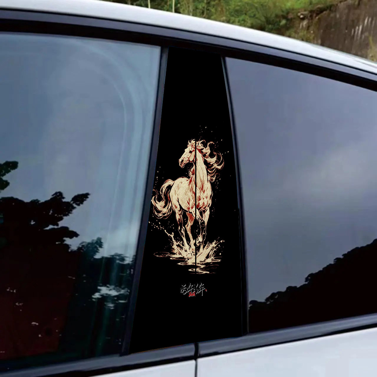 马年汽车中柱贴纸霸气车窗饰条防水防刮个性创意装饰B柱贴保护膜