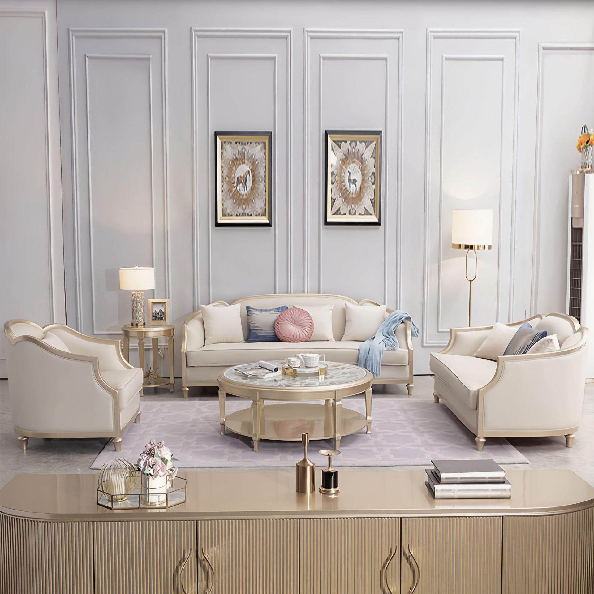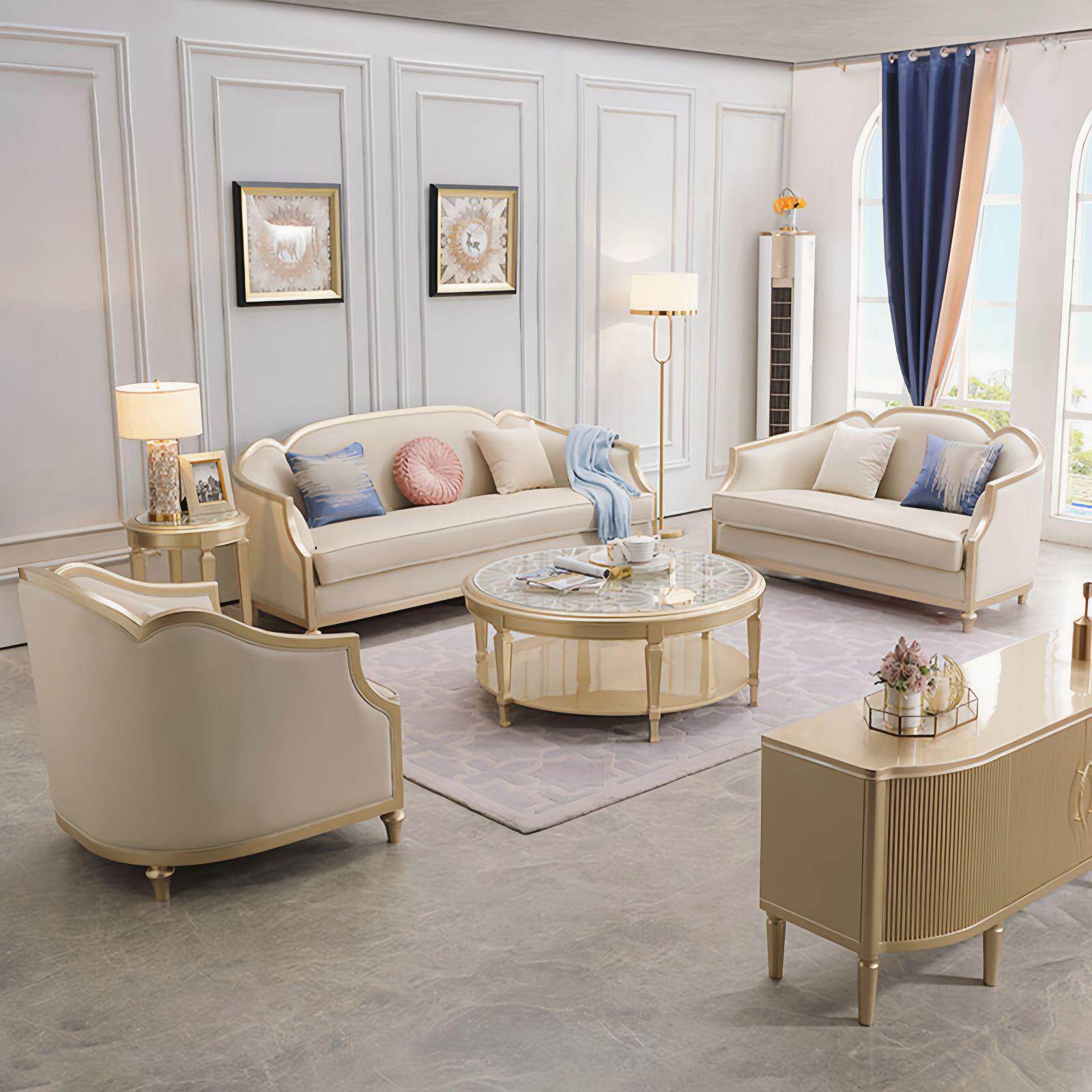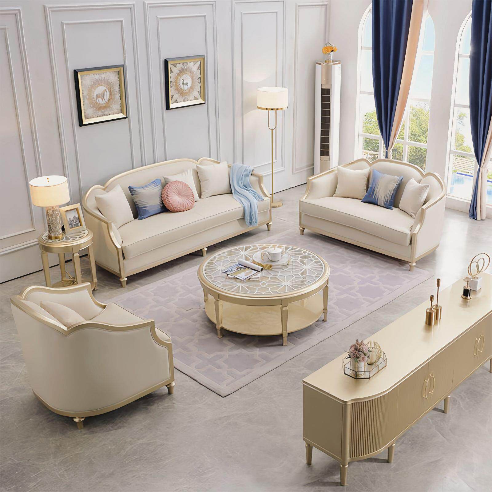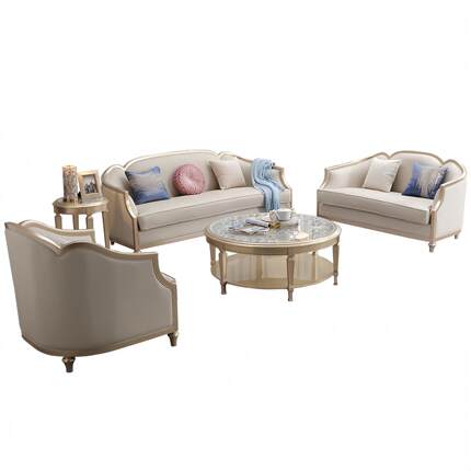 美式轻奢沙发皮艺大小户型客厅123组合法式高端实木奢华全实木