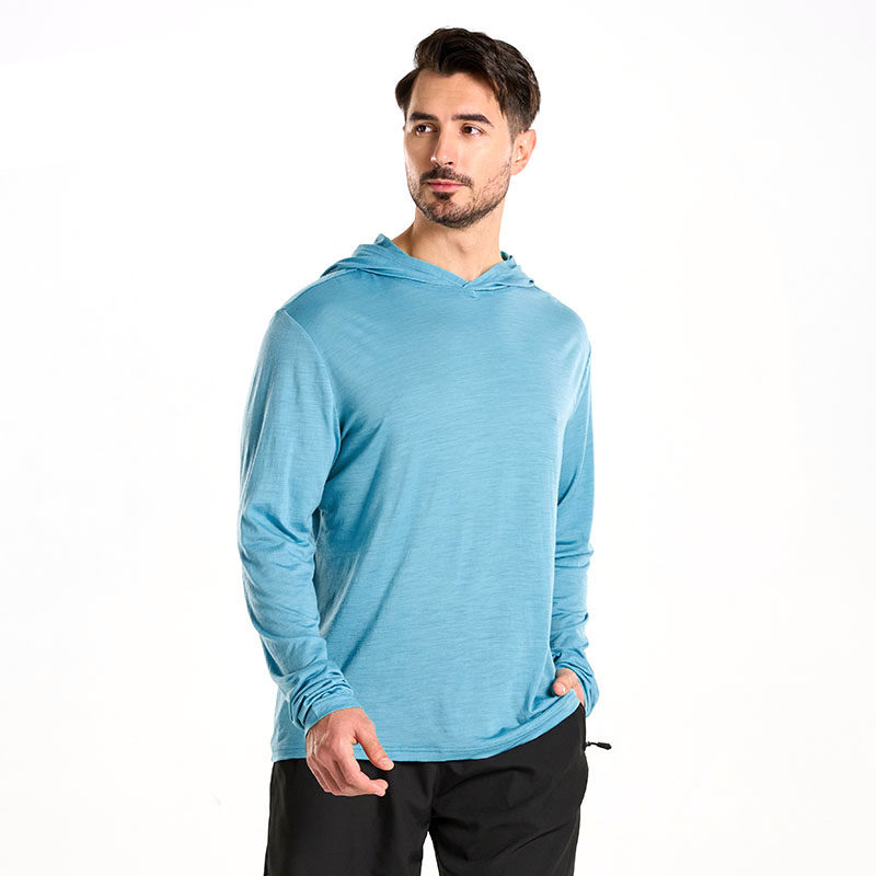 灰客户外男女防晒连帽长袖美利奴羊毛卫衣轻薄皮肤衣透气美丽诺