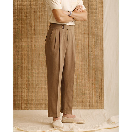 高腰西裤男夏季亚麻商务垂感那不勒斯修身裤绅士免烫休闲直筒裤子