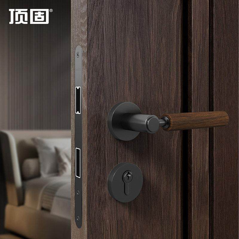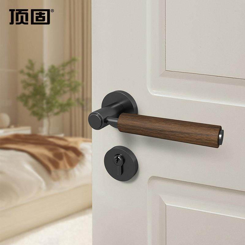 顶固卧室门锁胡桃木手柄磁吸静音两件式锁中古风家用通用型房门把