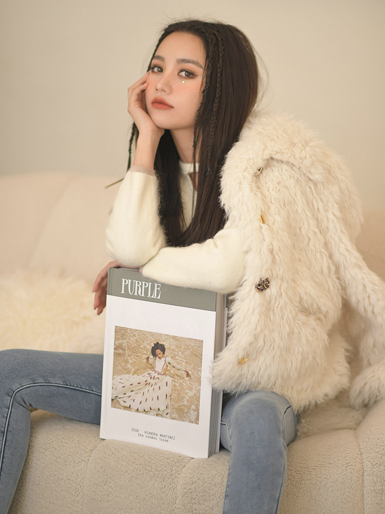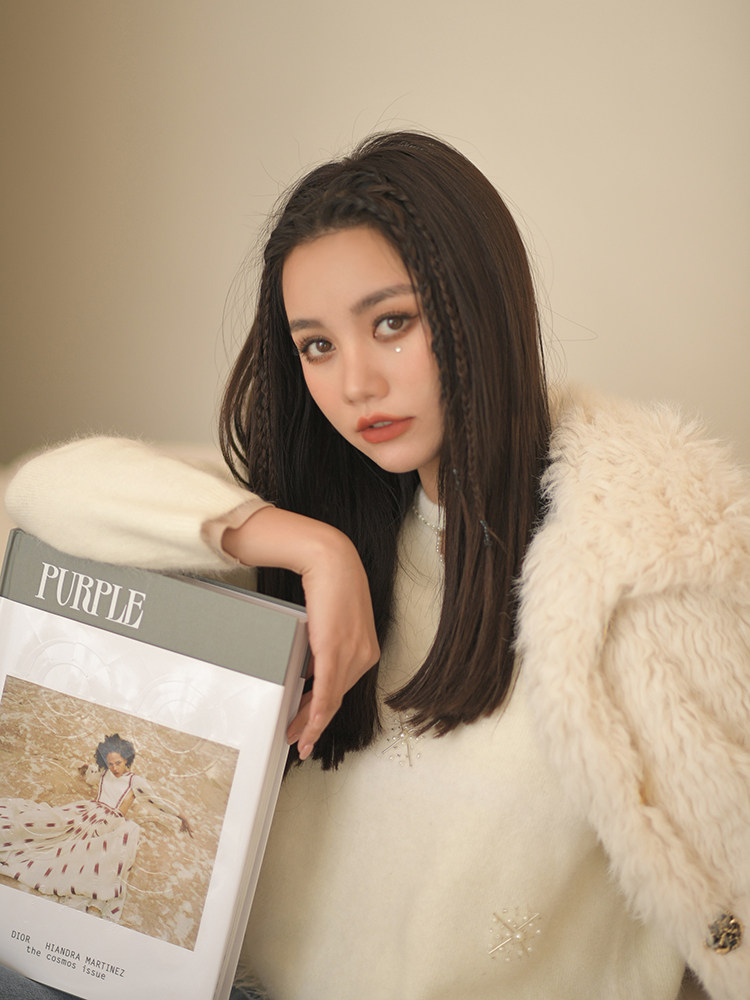 CAN冬季新款 雪花钉珠白色毛衣女圆领套头时尚百搭针织上衣