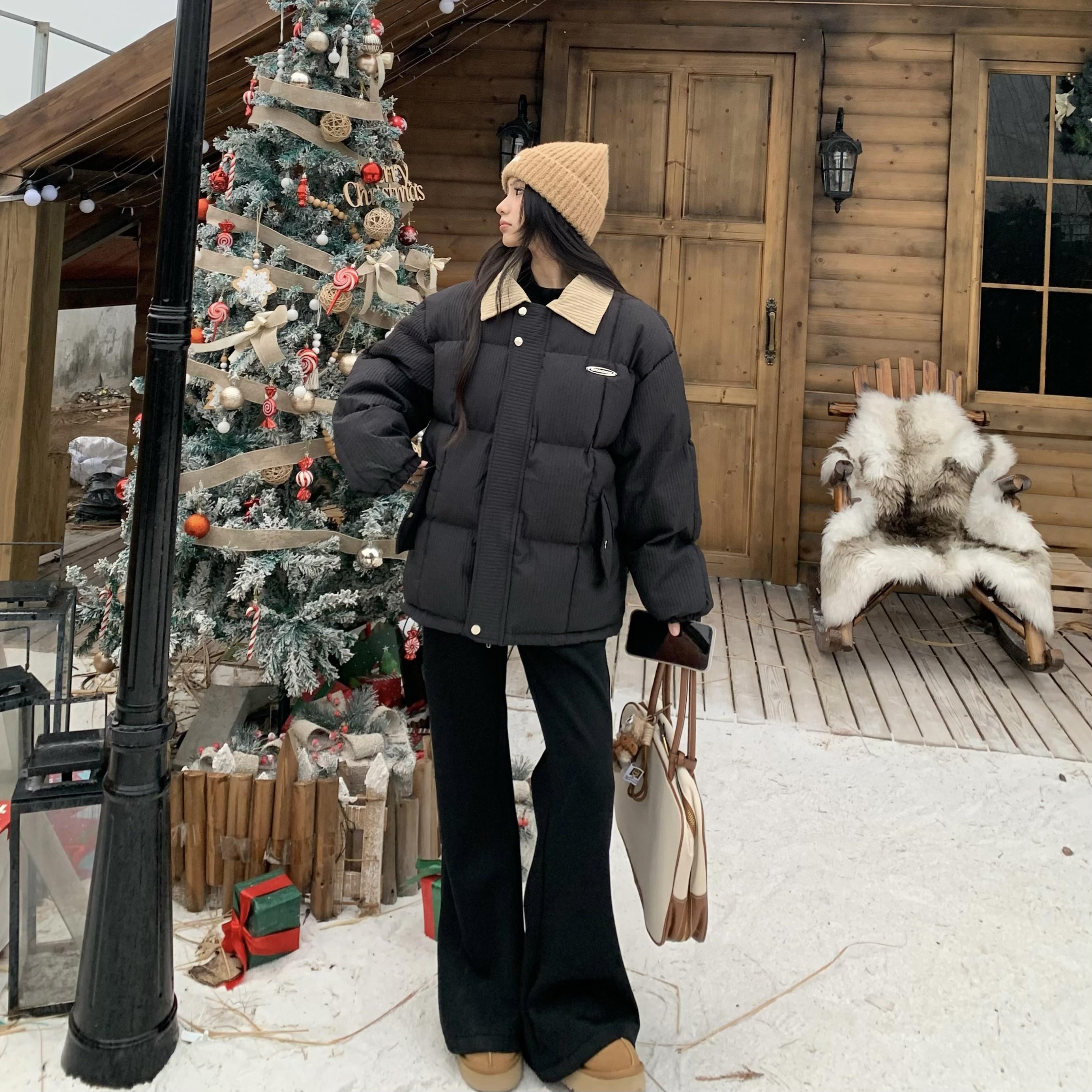 3MER哦哦三妹拼接撞色肌理感棉服女宽松2024冬季新款面包服外套