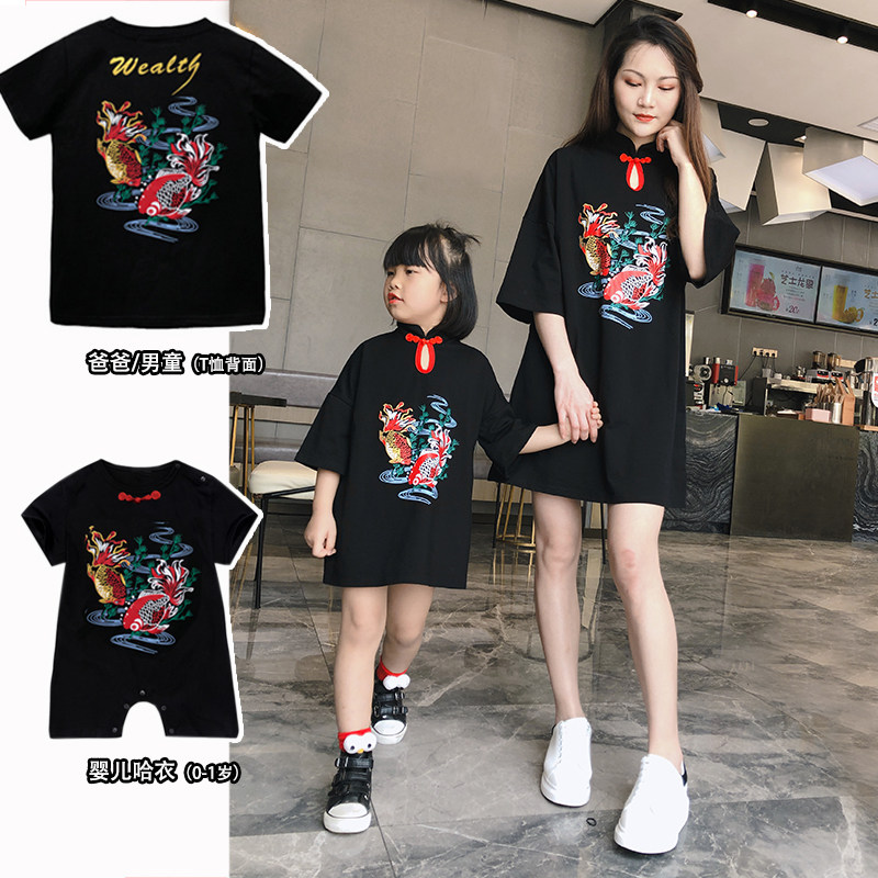 亲子装一家三口夏季中国风婴儿母女装旗袍高端连衣裙汉服炸街洋气