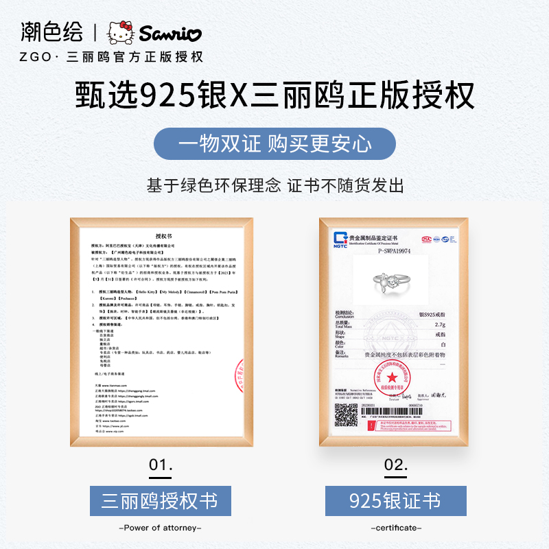 潮色绘玉桂狗925银情侣素圈对戒