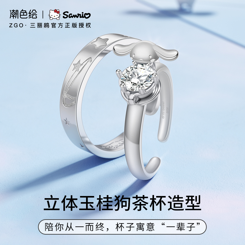潮色绘玉桂狗情侣对戒纯银男女生款小众高级感戒指实用型生日礼物