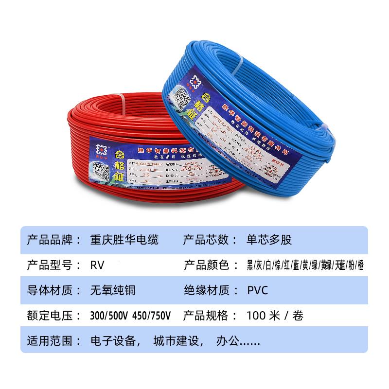 国标铜芯RV电子线0.3 0.5 0.75 1 1.5 2.5 4 6平方单芯电线软导线
