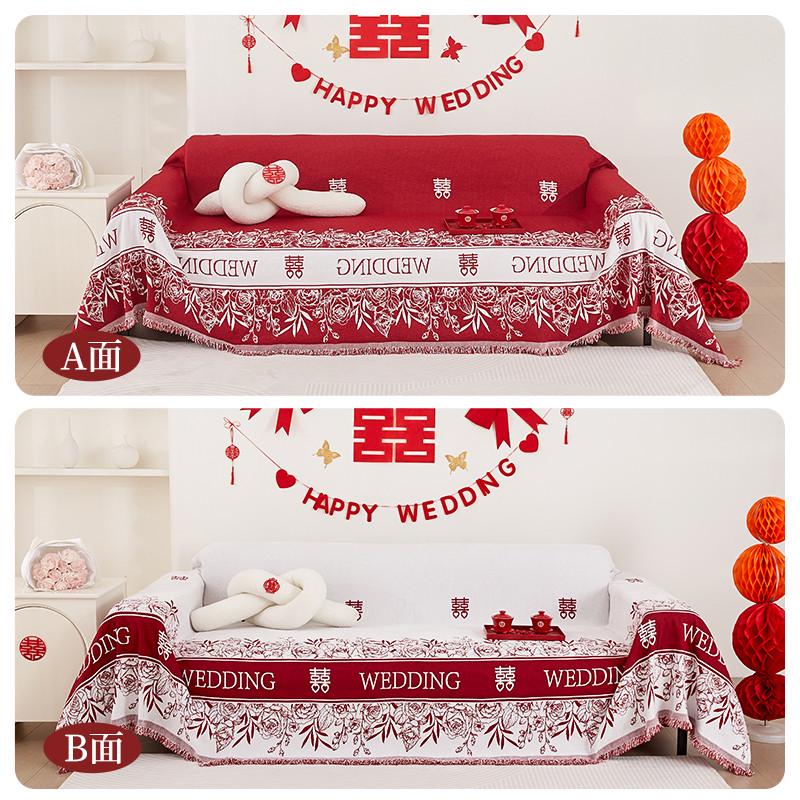 红色婚庆沙发盖布结婚喜庆沙发垫四季通用雪尼尔防猫抓沙发套罩巾