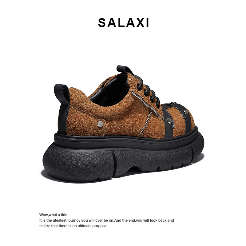 Salaxi/莎莱茜秋冬复古风柳钉德比鞋男款百搭时尚厚底潮流休闲鞋