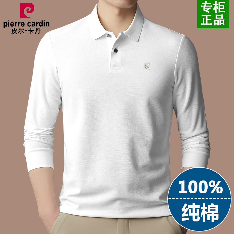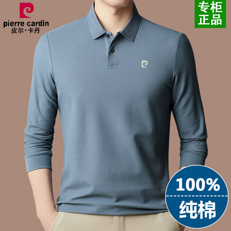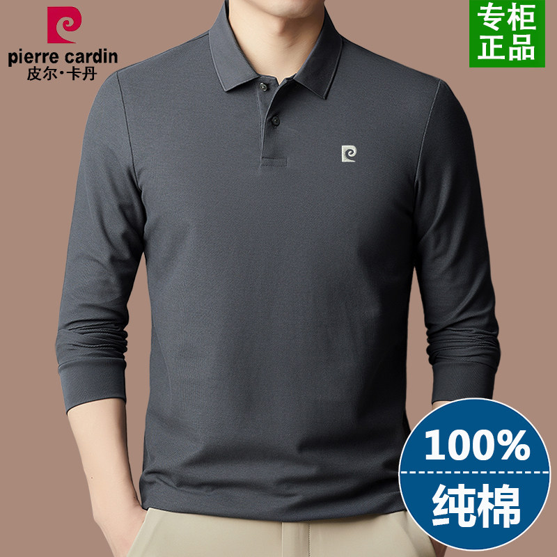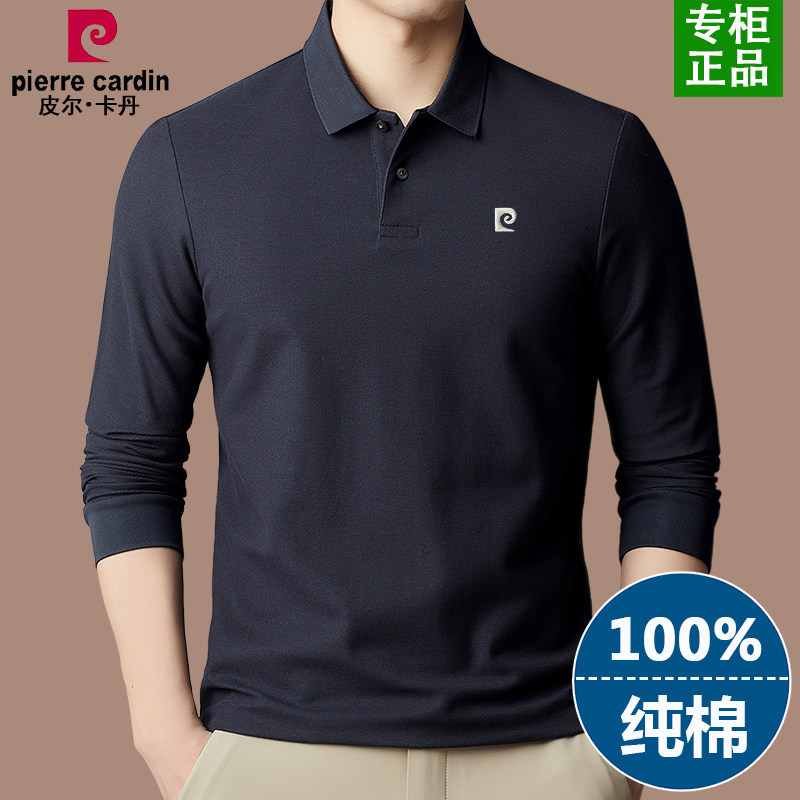 正品皮尔卡丹纯棉长袖t恤男2025春季新款中年男士纯色翻领polo衫