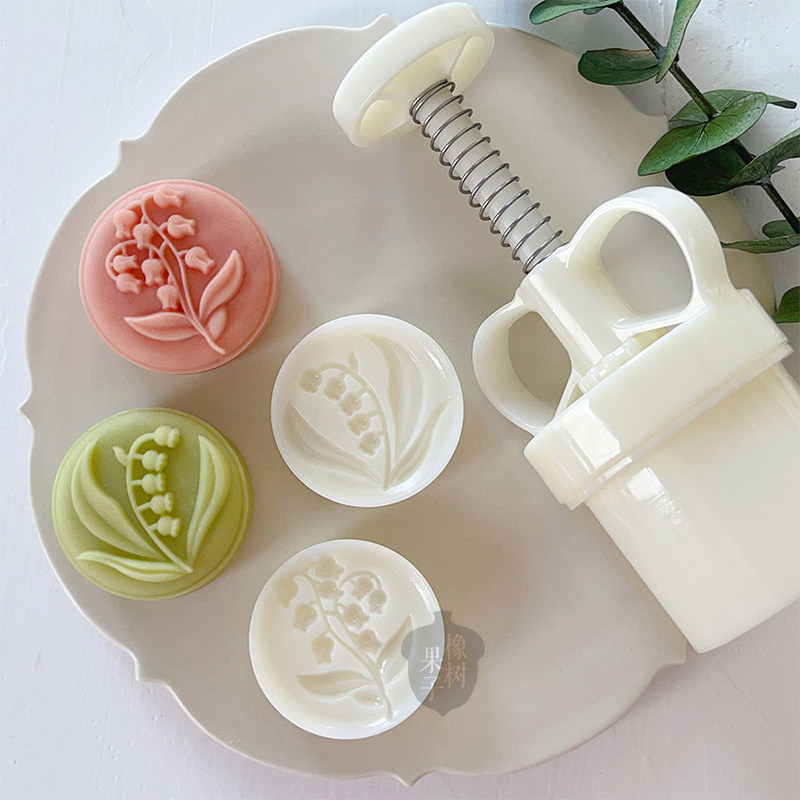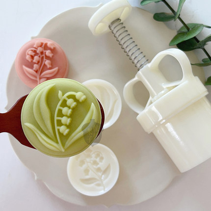 50g法式田园铃兰花立体绿豆糕山药糕辅食模具中秋节花卉月饼模具