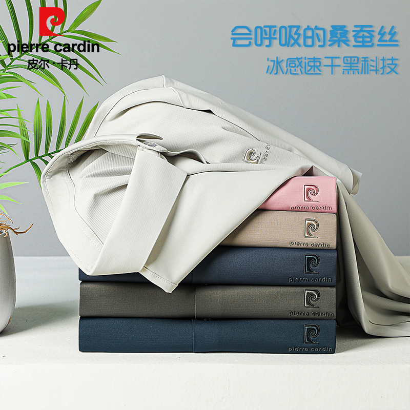 皮尔卡丹桑蚕丝短袖衬衫男夏季高端商务休闲衬衣爸爸装父亲节礼物