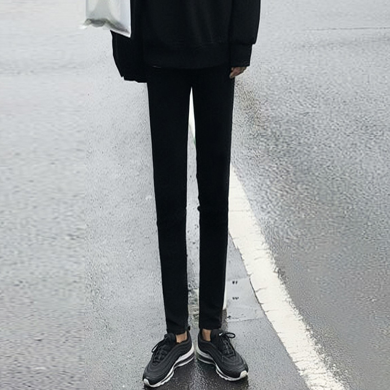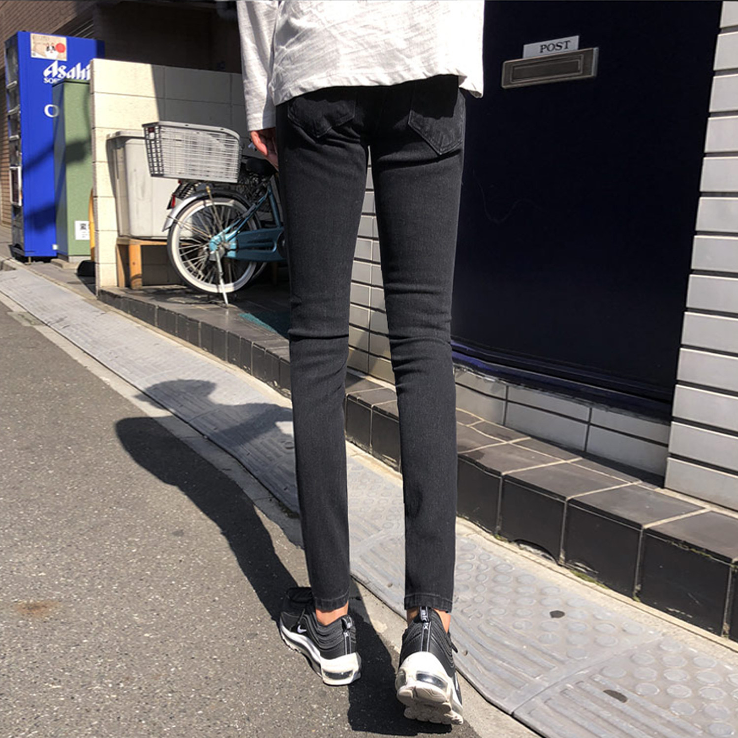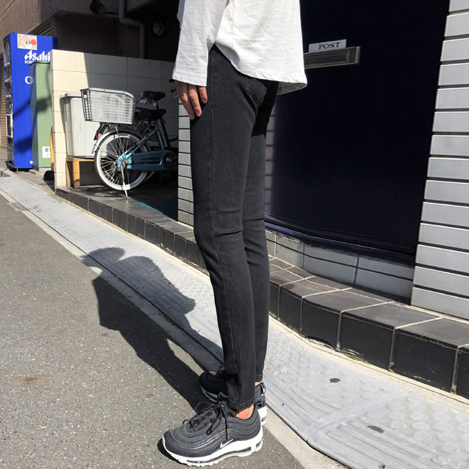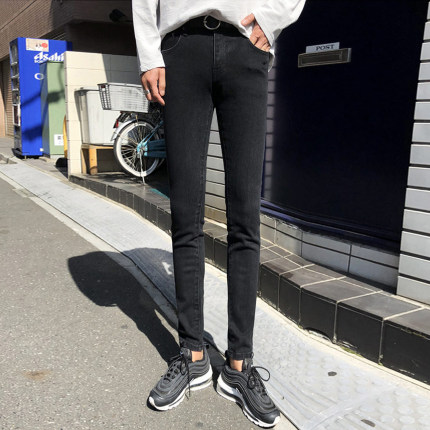 冬季男士黑灰色加绒加厚高弹力修身牛仔裤男休闲紧身百搭小脚裤男